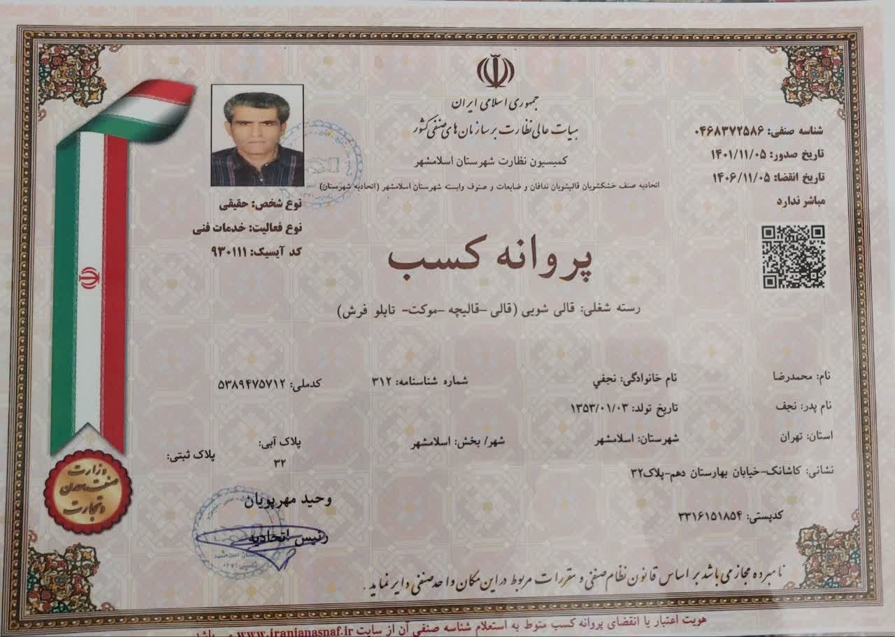 - اعتماد قدیمی ترین قالیشویی مجاز اسلامشهر است